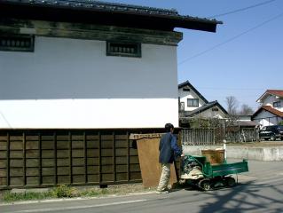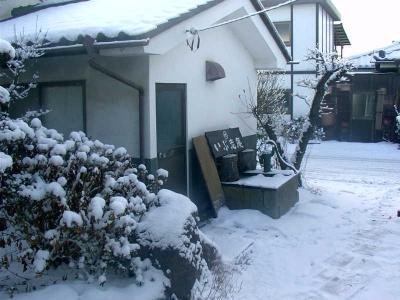 ■寒さが続き凍みるこの時期は、カマドで大根を煮たり、黒豆を煮たりの作業が 楽しめます。鉄のお釜で煮る黒豆は柔らかく色も黒く美味しく煮あがるので、ありがたい 道具です。 麹とご飯で作ったアマ味噌に黒豆を乗せて食べるお茶請けは佐久の冬には欠かせません。 ■大根を煮てからつくばいの水に晒します。 北側の軒下に干しておくと、凍みたり解けたを繰り返して、からからに乾燥した 凍み大根が出来上がります。春先の煮物に欠かせない一品です。 今年はちょっと遅すぎました。1月の大寒の頃出来なかったのが残念です。