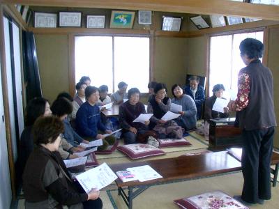 ■保健補導員の地区活動として、2回目の健康講座を開きました。 元保健師のテイさんからインターバル速歩を1年間実践した体験をお聞きしました。 今注目されている、新しいウオーキングの方法です。3分間のサッサカ歩きと、3分間の ゆっくり歩きを繰り返し30分程歩く方法で、生活習慣病が少しづつ改善されている実例 を紹介していただきました。寒い中でしたが参加された20人の皆さん、これからの 参考になったことと思います。