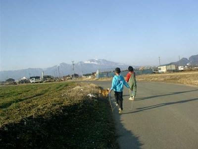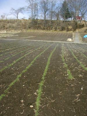語りの会の後、孫との散歩を楽しみました。歌をうたいながら、犬の次郎と 仲良く原から裏の山道へ、そして菜畑の見晴らし台に登ったり、稲荷社へお参り したり、「たのしいね」と1年生のケイ君がうれしそうに声を掛けてくれました。 お母さんの仕事が夜までだったので、夕食を食べて、お迎えに来るまで ずっとお付き合いしました。 ついテレビは見ないで、7時間の楽しい時間を過ごしました。大人が子どもに向き合う 姿勢があれば、子どもはテレビやゲームを離れることが出来ると感じた、 貴重な体験でした。 冬の寒さを乗り越えた、油菜畑です。今年も一面の菜の花畑が楽しめそうです。