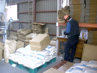 トクさんは、 無農薬のアイガモ米など特別栽培米の出荷作業に月に4回、ケイ市の 原まで行っています。その仕事場を見学したいと前から思っていましたので、春休みの 孫たちと見学に行きました。家から車で40分近く行った場所にあります。 コンクリートの広い作業場は冬の間はさぞかし寒いことでしょう。 めがねを掛けて、出荷の内容を間違えないように真剣にやっていました。 「頑張ってね」と声をかけて、写真だけ撮って来ました。 主に関西方面からの注文が多いようです。玄米、3ぶ,5ぶ、7ぶ搗き、と夫々の注文 に応じて仕分けするので、集中してやらないと大変のようです。出荷時間が11時半に 決まっているので、それまでに間に合わせるため、無駄話もしないで、やっていました。