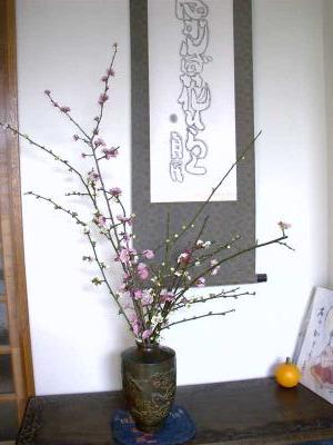 越生の梅林を訪れた、お友達から梅の花を戴きました。我が家の玄関も 一足早く梅の香りに包まれました。とらちゃんが、早速近寄って梅の香りを 楽しんでいましたよ。