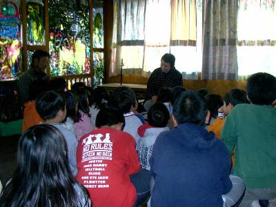 孫達にとっては心うきうきの春休みです。進級祝いを兼ねて 恒例の一泊旅行に出かけました。今年は別所温泉です。 別所の近くの保育園に通う孫に逢って行こうと、連絡すると、「せっかく、保育園 に来るなら、語りをやって欲しい」と頼まれて、30分ほど 語って来ました。 語り 犬の足 穴のぞき うた お山の杉の子 2歳から 卒園児のお兄ちゃん まで30人近い子ども達でしたが、しっかり聞いて いきいきとした反応があり、楽しく語れました。 「お山の杉の子」の歌は戦争中に出来た歌ですが、舞田峠の松が枯れて丸々坊主の禿山 を見て来たので、つい思い出した歌ってしまいました。 子ども達もニコニコ笑いながら歌って、思いがけなく時間がもてました。 むかしむかし その昔 しいの木林のすぐそばに 小さなお山があったとさ あったとさ 、、、お日様にこにこ 声かけた、声かけた、、のフレーズが お日さまクラブの保育園にぴったりでした。