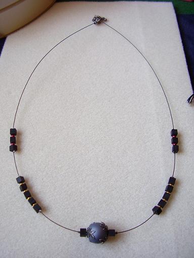 こんなチョーカーを作りました。スクエアのマットなブラックジェイドを使って飛び石風に配置。しかし、間の丸小ビーズの色が気に入らないので作り直すことにあっさり黒に統一しよう、と思いこうなりました。飛び石風が面倒になって、通すだけに。面白みのないモノになってしまいました。・・・またいつか、気が向いたときにリフォームしよう・・・^^;コレをつくった頃(1月の終わり頃)に罹った風邪がようやく落ち着きました。はぁー長い風邪でした。暖房のないビーズ作業部屋には当分落ち着けそうにありません。ビーズパーツ販売アクセサリー通り