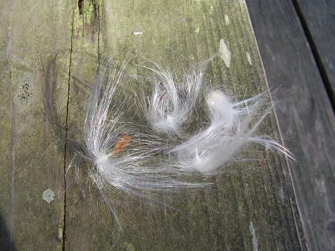 一ヶ月ぶりの宮島散策(その1)先月の終わり頃に引いた風邪が長引き、やっと体調がもとに戻ってきました。そこで突き抜けるような青空のもと一ヶ月ぶりに宮島へ渡りました。ここのところ寒い日が続いていたのですが、今日は春を思わせる日和です。いつものように、島へ着くと紅葉谷へ続く自動車用道路を登ります。登りはじめてすぐにみつけたコレ“???”何かの種子ですが、植物にはあまり詳しくないので何だかわかりません。けっこう大きくて、毛の長さは5センチくらいの綿毛です。10個くらい集めて束ねたら、ファーの飾りモノでも出来そうです。