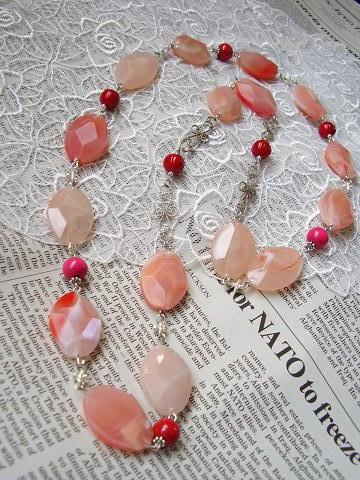 春をイメージしたネックレスビーズ作業部屋もやっとホットカーペットのみで過ごせるくらいになって、今年初めての作品です。何年か前には、リビングへビーズ持込んで作っていましたが・・・・ガラスビーズの破片やワイヤーの切れ端があちこちに・・・で断念、結局この冬からは冬眠することにしました^^;で、約3ヶ月ぶりに作業再開で、これとこれ珊瑚と淡水パールと天然石のペンダント淡水パールと天然貝のペンダントなんだか写真の色が悪くて最悪~冬眠の間に写真の腕も落ちたみたいですそういえば、この前のブルートレインの最後の雄姿もこんな有様でした 何の電車かわかんない ほんとうはこんな豪華なモノ作りたいのですが・・・・ピンクオレンジ珊瑚ネックレス40.5cm(+アジャスタ5cm)