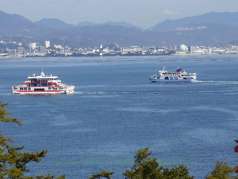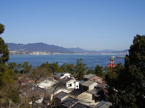 宮島散策(その3)2回目の休憩所ではこんな眺めが。こんなにくっきり広島の市内までが見通せる日はここでも珍しいです。これからは黄砂などで、晴れていても遠くは霞むことが多くなります。