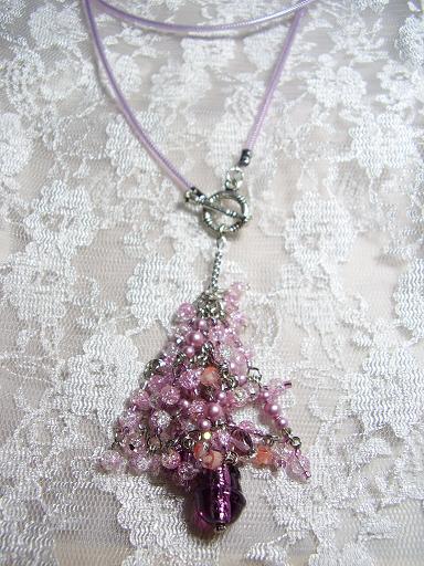 おはようございます。先週末に、つれづれに作ったものです。季節外れのクリスマスツリーのような形になってしまいました。中央のパープルのビーズは例のイタリアフェアで手に入れたベネチアンです。ちょっと写真が歪んでいます。もう一度撮る必要がありそうです。