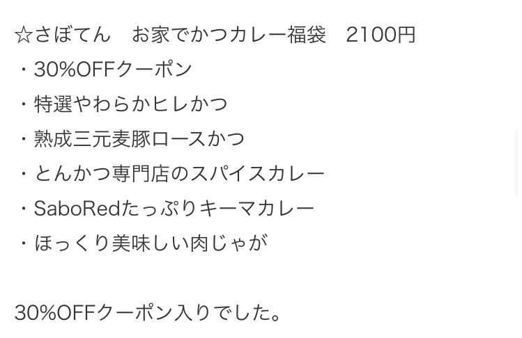 私が購入したのは去年と同じ2100円のカレー食べ比べ福袋^ ^
