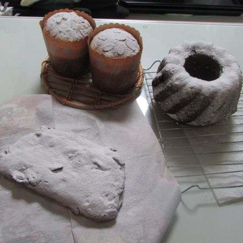 今年のパン講座のレッスンも後、来週の1講座を残すだけとなりました。12月に入り、自宅、公民館などでは、クリスマスのパンのレッスンを開催しています。毎回、違うクリスマスのパンのレッスンです。シュトーレン・クグロフ・パネトーネ・抹茶リースにハラーブレッド・クランベリーミルクと色々です。どれも美味しい大好きなパン。最後は、来週火曜日、クリスマスリースブレッドのレッスンです。そして・・・自宅では、1月からの講座のパンの試作中です。レシピはもう出来上がっているのですが・・・もう一度、試作して、改良中です。 きなこパンにチョコハース冬野菜のがレットは、ほうれん草がいいか、白菜がいいか???家族の意見を聞いて思案中。ミニココアは自分の思っている大きさになかなかならず・・・粉量&水分量を調整中。でも、考えながらのパン作りも楽しい!!そろそろ、大掃除、クリスマスやおせちのメニューも考え始めなきゃ!!