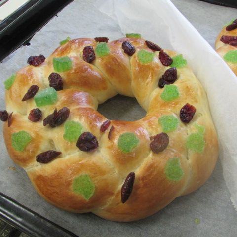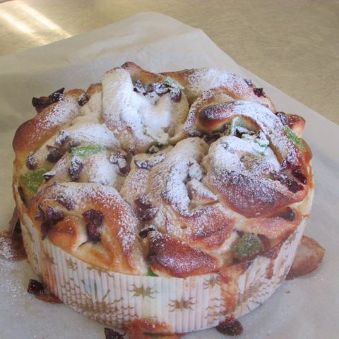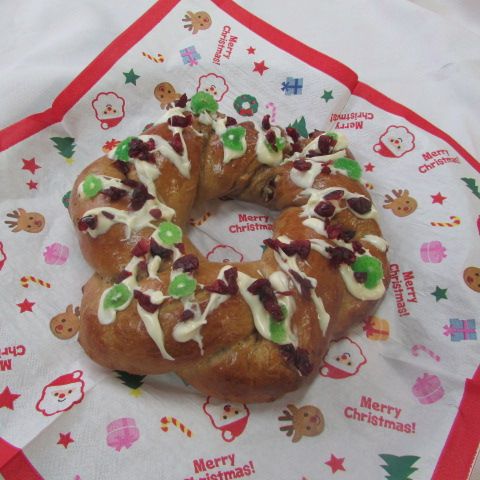 今日のレッスンは、クリスマスパンです。 Nさんは、フランスのパン、クグロフSさんは、ドイツのパン、シュトーレンMさんは、イタリアのパン、パネトーネそれぞれの国のパン、昔から受け継がれている伝統的なパンです。卵もバターもドライフルーツもたっぷりで、とてもおいしいパン!!3人とも、それぞれのパン、おいしそうに焼き上がりました。 そして、今日の試食パンもクリスマスを意識して・・・クリスマスリース型の抹茶リースです。全粒粉入りの生地に、抹茶パウダーを混ぜ込んでいます。三つ編みの成形で可愛くリースに!!仕上げは、抹茶アイシングとクランベリーでクリスマスっぽく!!今日もおしゃべりも弾み、笑いもありの楽しいレッスンでした。次回は、1月ですね。楽しいクリスマスを。そして、よいお年をお迎えください。