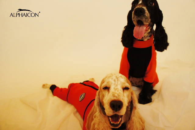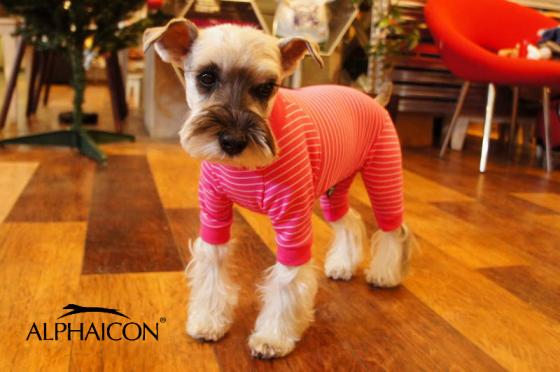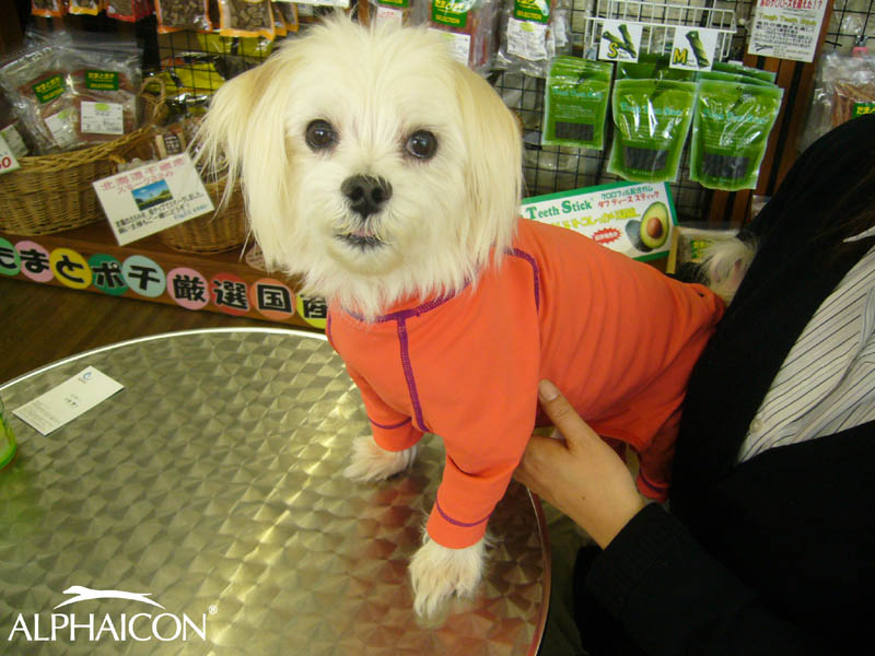 大変ご無沙汰しております。水嶋です。試着のススメ2から早2ヶ月経過してしまいました。すっかり寒い冬も終わり、春を通り越して夏の気配、いやその前に梅雨だな。という感じの6月、今日この頃です。さてさて、試着のススメと題してブログを続けておりますが、今回も「試着のススメ」行きたいと思いますので、よろしくお願いします。前回までは、どちらかというと飼い主様目線で試着について書きましたが、今回は犬目線で書いてみたいと思います。犬なんて試着する必要あるの? → あります。 だって着るの犬だもの。でも、ちょうどいいサイズ/着心地なんて分からないじゃない? → それが分かってくれるんです。もちろん犬はしゃべりませんので、小さいだの大きいだのはわかりません。しかし、着せたあとのワンズ達の行動でおおよそはつかめます。それは、服を着せた状態での犬の動き。違和感なく普通に歩く、走る。 とても簡単なことですが、ものすごく重要です。これができない場合、何かしらの問題があります。・固まって動かない・スキップ状態で歩く(後足)・服を噛むこういったワンちゃんもいらっしゃいます。こういったワンちゃんの場合、初めての場合は、長くても一日着てれば慣れます。服は嫌いという場合、嫌いになったケースも様々なので一概には言えませんが、慣れます。一番問題なのは、・足の付根がフィットしていない・尻尾が隠れるくらい着丈があっていない・爪が隠れるくらい足丈が長いなどなど。こういった場合は当たり前ですが、歩けません。(着丈は別ですが)歩けても何かしら動きがおかしくなります。場合によっては、転ぶ、排泄物が服の中に入る、など様々なトラブルが起きる可能性があります。そうならないように、より調度良いサイズを見るために試着は重要なのです。試着をしていただくときは、そのあたりをよーく観察します。そしてボディを手で触り、足の付け根や首周り、お腹まわりなどがしっかりとフィットしているか。時にはバンザイをさせて体の伸びに対してウェアがきちんと対応出来ているかなどもチェックします。ですので、本当に残念なのですが、お断りする場合もあります。サイズが合わないのにオススメはできません。また、比較的珍しい犬種や胸が大きい子はサイズが合わない場合が多いです。こういった犬種にも喜んでいただけるようにサイズ展開は考えていきたいと思います。ALPHAICONでは、試着をする事で、ドッグウェアが本来持つ機能性や利便性、社交性などが十分に発揮できるようになればと考えています。そうすることで、犬との共生生活がより充実した将来性のあるものになると考えているからです。