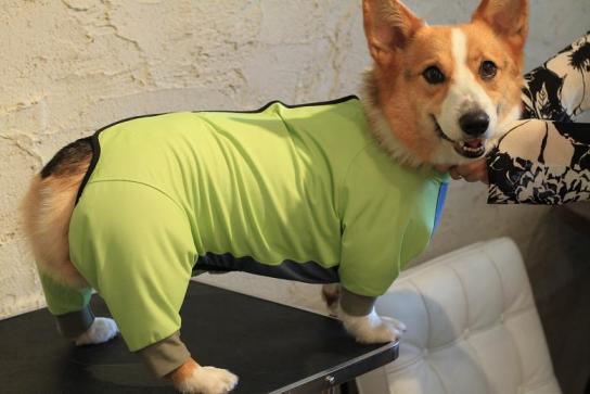 こんにちは。3度の飯よりコーギーが好き。サカガミでございます只今 最終調整中のコーギーサイズ。本日SHOPにてサンプルのフィッティングがありましたので、私もコギマニアとして同行させていただきました!レインドッグガードのサンプルを試着中のマック君 13キロ ♂※サンプルなので商品とは色が違います※実際にコーギーに着て頂き、歩いたとき、走ったとき。立ち上がったとき、伏せたとき。座ったとき、ジャンプ!したとき。色々な動きを見て、不具合がないかチェックしていきます。試着と調整を繰り返し、完成になります!コーギーのお洋服選びの悩みと言えば。。。袖の長さ・着丈の長さ ではないでしょうか。骨格がガッシリしているけど手足は短いので、中型犬用を買えば袖が長くて着れないし、小型犬用を買えば着丈が足りないんですよね。足が短いので 雪解けの季節や雨上がりはドロドロでもう大変!でも活発な犬種なので、お散歩に行かないわけにはいかない。。。そんなコーギーにぜひ着ていただきたい!!レインドッグガードです。雨の日も、雪の日も、走り回るコーギーにピッタリなのです全国のコーギーオーナー様、楽しみにお待ちくださいねモデルとして協力していただいた、マック君 ♂ 13キロ、コニーちゃん ♀ 10キロチョップ君 ♂ 14キロどうもありがとうございましたサカガミ