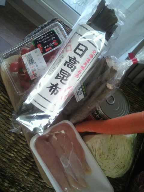 お久しぶりでございます。m.ayakoでございます。。春の匂いを感じ~爽やかと感じたいところですが。。。。今年は、ひどく~眼球と鼻が痛みつけられます。。そんな~今日この頃ですが!いかがお過ごしでしょうか??チョッとした機会があり~~~先日、ペット食育入門講座を受講してまいりました。。勉強~とは、脳みそに刺激があり!楽しいです☆(と感じました。)知ってるのと、知らないとの差は~恐ろしく感じます。今♪巷で人気の『愛犬の手作りごはん』について、学んできましたよ☆アタシ的には、気にはなっていた分野ですが~栄養学とか~~~色々難しい~イメージで緊張しました。全然そんな事なく~普通にライフスタイルに取り込む事が可能と思えるくらいでした。長続きするには~~めんどくさい事や難しすぎる事は,避けたいのが本音よね☆もちろん!ペットフードだって必要な時が有るから~~柔軟性を持ち~手作りご飯にチャレンジしたいのだぁ~~~『人間に必要な栄養素を全て含んだカップラーメンが出来ました!今日から死ぬまで毎日食べてください!!!!』この質問を問いかけられた時!アタシは!嫌だぁ~~と感じ。。。ワンコ達も毎日~同じドッグフードだったら、、、嫌かも。。。って単純に思い!決意したところです。。時々は、ドッグフードでお願いするかも~~『ごめんよ!いちご~ばにら~ちゅちゅ~』一緒に美味しいもの食べようね!っと素直に感じた。手作りにしたら、何を食べたか?分かるから安心かもね♪チョッと割高ご飯かもしれないけど~~楽しんで食事したいしね♪だから~~手作りごはん『も』どうかなぁ~~って感じがドキュンです☆本日の仕入れてきた食材は コチラ ↓ ↓張り切りすぎかなぁ~~~これにプラス!!白米です☆我が家で頂いている『ゆめぴりか』出来上がりが コチラ ↓ ↓初!!手作りなので、、、チョッと不安だから~~~ドッグフードもトッピングしてみました~~~どうですかね???もちろん!我が家のいちご&ばにら&ちゅちゅは、マッハ!で完食です☆嬉しいっ聞いては、いたけど~~~確かに!オシッコの回数と量は増えたかも。。。透明に近いオシッコになったよ!!!大成功 m.ayako