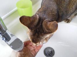 飼い猫のアビシニアンなぜか水は人の手を介して飲みます。誰もいない時は置いてる水を飲んでるはずなんですが・・・わざわざ呼んでまで洗面所に連れて行きますこの時期水が冷たいのであげる方も辛いんですけど~彼からは「お前が甘やかしすぎ」って怒られますおかげで家族全員からブーイングいつからこんなになったんだっけ???大変申し訳ありませ~ん