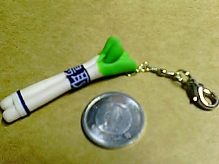 ちょっと思い立って、『蛙』でも『スイーツデコ』でも無い物を作りました。白ねぎのチャームです。テープは、モデルにと買って来た白ねぎに巻いてあった本物です(^^);暗い所で、ぼ~っと光る蓄光仕様です。