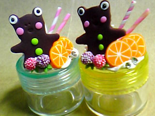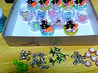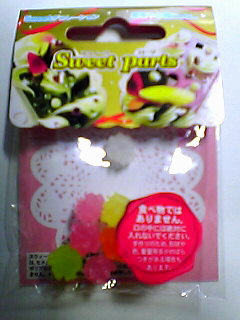 アクセと小物のお店でスイーツデコのパーツを発見!キウイやバナナ、みかん、クリームやチョコ、アイスも!みかん可愛いTTう~、不細工なヤツだけど作ったからまぁいいかorzでもこれは!!私にはきっと無理♪作れませんという事で…買っちゃいましたへへ、可愛い♪