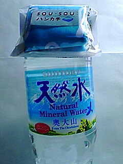 ローソンのサントリー天然水に首掛けおまけが付いてました。おぉ~、地元大山の天然水!『雪どけの味がする。』だそうです。ハンカチです。『WA-RA-BI』をゲット。全部で8種類。渋めで、可愛いです。
