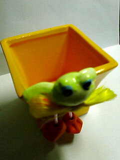 ダ●ソーの園芸コーナーに居ました!植木鉢です。蛙、付いてます♪足がアヒルっぽい気がしますが、蛙の鉢につかまって頑張っている様子が可愛いのでOKです。