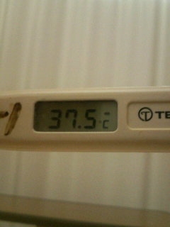 夜の検温 37.5℃Σ( ̄□ ̄;||| アイスノンして寝ます・・・ ジャンクフードの夢でも見ながら( ̄m ̄〃)