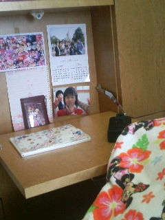病室のりょうのベッドサイドには写真がいっぱい♪ちょうど枕の右側にある取っ手をピコンとひっぱってパタンと台を倒すとミニテーブルが出来上がり写真がいっぱいでてきます 手術した日寝る時そのテーブルたたむん忘れて寝返りした時にそのウッディな角で痛い痛いほっぺを強打したのは内緒です(アホ丸出しなんだものー 寂しいから寝るギリギリまで写真を見てたんよーで、そのまま寝てしもたんよー でさ同室に入院してきた40代主婦昼となく夜となく旦那が毎日見舞いにきます 旦那働いてんの? 地味な感じの夫婦やのに 二人で爆笑しながら数時間トークを楽しんではります うちのダーリンは仕事忙しくてなかなか来れないってのに 男なら働け!ンニャロー!(デンデン羨ましくないやいっ