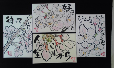 「近くで見るとよくわかる桜の絵てがみの数々・・・。桜を見ると描きたくなります。」