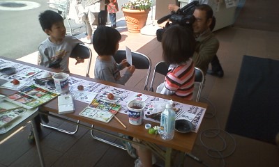 ヴェスタ新南陽の土曜市で絵てがみ体験教室を開催しました。ちょうど山口放送が取材を