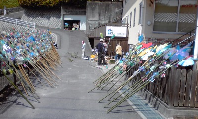 今日は予定通りに、かざぐるまにお飾付けです。約20人の男女が手分けしてやりました