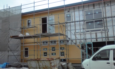 春から、動いている現場。ぱっしょん2も順調に仕上がっています。2階のアパート部分も
