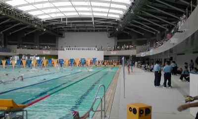 「山口きらら博記念公園水泳プールは,連日熱戦が・・・。早く泳いで見たいプールです。」