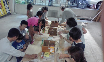 毎年行なわれる夏休み工作広場は、うちにスタッフの企画で行ないます。大工さんたちも