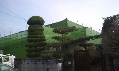 「門やお庭も立派なお住まいです。外壁や木部も終わり、あともう少しです。」