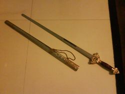 旦那す。現在、私は中国の広東省にある田舎におりますが、この家はおいらが住むまではある家庭がここにおったわけです。キッチンが異常に汚いのは、クドイほど記事にしていますが、契約の際に「持って行く」と契約したものを運び出していないし、契約の際に「設置する」と契約したクーラーが入っていなかったりと、思いきり典型的な「中国人」とのやり取りを行っておるわけです。で、今日も旦那はせっせと部屋の掃除をしていたわけです。中国版「クイックルワイパー」で床を掃除していると、・・・・・ガシャン!という音とともに、映画でよく見るあれが倒れてきたわけです。←刀でござるそうです。刀です。・・・・・こんなもん、ただの飾りだろ?と、思っておりましたが、かなりの重量感。刀をひく抜くと・・・・・マジじゃん。これって人を殺すことができそうです。日本だと明らかに銃刀法違反に問われる、刃渡り1mの刀。非常に困っております。困っている中に電話がかかってまいりました。「かえってきたよー」そうです、うちの先輩社員です。←おみやげだぁ。しっかりと、お土産を貰いました。チャーハンのもとに味噌汁、そしてホットケーキミックスとメープルシロップ!完璧です。困りつつも、明らかにうれしいお土産なのでした。2008年5月4日 今から飯食いにいってきます。