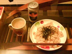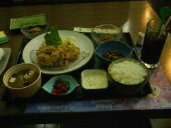 旦那す。こんばんは。今日は久しぶりに結構な残業をしました。非常に疲れております。と、言うことで職場の先輩にいただいた入浴剤、その名も「汗だしトウガラシ」を試したんすわ。・・・・・でますね。風呂から上がった今でも、汗が噴き出してきます。風邪対策で部屋で加湿器をバンバン稼働しているので、クーラーなんて入れられません。さて、今日のご報告すべき「男飯」でございます。やっぱり、日本料理屋に行ってしまいました。完全に負け男のご報告となることをお許しください。・・・・・こんなの見たら、田舎の父ちゃんが泣くな。→からあげ定食!すみません。普通に食べたい物を頼んでしまいました。一応、野菜を食べないといけないので、きんぴらごぼうと煮豆が付いていたのはラッキーです。飲み物は「アイスコーヒー」。・・・・・完全に好きなものだけですね。ってな感じの生活。早く、自炊生活をしなければ、メタボリックまっしぐらだ!なんとかせねば。2008年4月22日 まだ汗は噴き出してきます。
