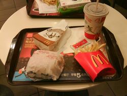 旦那す.以前より、食事に関しては非常に困っておりますが、それはいまだに状況変わらず.やっぱり、困るものは困ってしまうのであります.そんな時に非常に助かるのはファーストフードなんですね.世界のどこでも同じ味.価格もある程度安い.こんな便利な物が、わが町にあるのか!と言えば、・・・・・あるんですね.世界のキッチン、マクドナルド.鳥社会の悪夢、ケンタッキー.この、世界を代表するファーストフードチェーンは我が町にも触手を伸ばしていたのです.中国のこの片田舎に!そして、そこに海外赴任者が一人.当然、その触手の甘いわなに引っかかってしまうわけだ.確実にメタボリックな香りにだまされ、食べてしまうってわけだ.と言うわけで、「I'm LOVIN' IT」なマクドナルド.この味は普遍であります.中華圏に置いては「ポテトは冷めたもの」と思っておりましたが、(過去にBLOGで記事にしたような気がする)なんと、ここでは暑いんですね.中国も変わりましたよ・・・・・母さん!2008年4月29日 今日は韓国の試験認証機関と戦っています