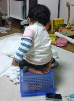 旦那す。やっぱり、家の掃除ばかりだと飽きますね。・・・・・仕事も飽きたですな。さて、とうとう2008年5月になりました。もうこの季節が来たのかと思うと、1年というのはものすごく速いなと感じるわけです。そう、うちの娘が「生誕一周年」を迎えるわけです。去年のこの頃には、育児用品を選ぶことで必死になっていました。チャイルドシートに関しての記事を書いたり、ベビーカーを選んだりと、子供が産まれるって事を実感しないまま、日々を送っていたような気がします。うちの娘が生まれて1年。僕は上司に呼ばれ、中国行きを聞き、人事発令がでて、赴任しました。いろんな事があったとは言え、ほんとに短かったと感じるんですね。でも、うちの娘は何を感じ、何を考えているのか?子供のころの1年は異常に長かったような気がします。彼女にとってこの1年は人生で最も長い1年だったのだろうなと感じるわけです。さて、そんな娘。←お気に入り?こんな箱に乗りながらも何か考えているんだろうな。と、親バカチックに思う訳です。彼女は自分がこの箱に乗ることで、何を感じているんでしょうか?・・・・・なにも考えてないかもな。2008年5月1日 今日は外食しちゃうことにしました