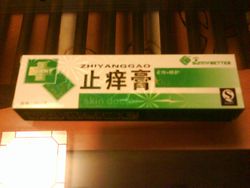 旦那す。って言っても、このBLOGは旦那しか更新していないのですがね。で、現在ですが「気分爽快」でございます。とうとう、やりました。あの、悪しき「蚊」をやっつけたのでございます。さっき、部屋に戻ってきたのですが、このPCの前に蚊がへろへろになってたたずんでいました。そうです、蚊取り線香が効いたのです。そのまま躊躇せず、手のひらを一振り。・・・・・大量の血。昨日の私の苦しみから解放される瞬間でした。でも、いつ敵が再び訪れるかわからない。そのために、ついに中国の薬局に足を踏み入れたのです。←痒みを止める軟膏ってこと?おいら:「どーも」薬屋:「あー、なに?」おいら:「蚊が・腕・刺す・痒い・止める・薬・ある・か・?」薬屋:「これ?」(あきらかにベビーパウダー)おいら:「あなた・蚊・刺す・これ・使う・か・?」薬屋(バカ):「使わない、これなら使うよ」って感じで出てきたこの薬。効能を見たら、明らかに「蚊」の絵がある!効きそうだ。で、今日の夕飯は何を食べたのかって?・・・・・また、ケンタッキーです。←KFCはオリンピックを応援してる?体に悪いとは知っていても、作るのめんどくさかったんだもん。明日からきちんと自炊します!キッチンも直ったし!2008年5月3日 連休って言うのは過ぎるの早いですね。