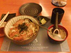 旦那でございます.男が一匹、海外にて生活している場合、何に一番悩むのか?それは「飯」であると、おいらは実感している訳でございます.なんて、書いておりますが、本当に困る.今はホテル住まいなので、周辺には日本食とか中華も四川とか広東とかたくさんある.来週の末くらいから、ホテルを出るので、そうなると周りには何もない.正直なところ、現状でもまったくもって「何を食うのか、俺は?」と思う毎日なのである.日本人の出張者がいれば、中華料理はベストだが、この中華料理ちゅうのは一人で食いに行くもんじゃない.たくさんの物をたくさんの人と一緒に食べるからこそ、良いのであって、店員:「何人すか?」おいら:「ひとり」なんて会話をしようもんなら、店員は明らかに「はぁ?」という顔をするくらいだ.なので、最近はめっきり「日本料理屋」で定食を食べるのが普通になってしまった.以前は、「郷に入っちゃったにもかかわらず、郷に従わないやつは死刑」と思っていたのですが、やっぱり、こうなっちゃいましたな、残念す.でもって、最近のお気に入りは「カツ丼」でございます.各、日本料理屋のカツ丼を食いつくす旅.まさに男のロマン、全開でございます.これは先日、ホテルの日本料理屋で食べたカツ丼です.玉ねぎに「紫玉ねぎ」を使っていたので、失敗したかと思いましたが、案外うまかったです.さて、日本語があるとメニューとかは見やすいとは思うのですが、間違いが多すぎて、笑ってしまうことってよくあります.←メチカツってさぁ?んな感じで、男一匹生きている旦那なのです.嫁ちゃん、早く来れるようになんないかなぁー.2008年4月21日 今日は定時退社して洗濯してます
