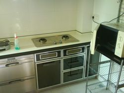 旦那でございます。昨晩は非常につらい夜でございました。それは「蚊」です。耳元で囁かれるようなあの羽音は、思い出すだけでムカムカします。腕を二ヵ所刺されたのですが、刺された場所が熱を持つくらいに痒く、ベトナムでも味わったことのない、非常につらい感覚でした。そこで、おいらは「緊急非常事態」を昨晩の05:00に緊急発令し、寝室に蚊取り線香を配備、そしてドアを完全に封鎖し、上掛け布団を持ってソファに移動。そこで寝ることとしたわけですが、・・・・・完全に寝違えましたよ、ソファってやらかいもんなぁ。という事で、曲がらない首を気遣いつつ、朝飯を食べ、布団を干し、「もー、家事ばかりで私の時間がないわぁ」、なんて言う奥様方の気持もわからんでもない。そんな中、聞きなれない「ピンポーン」。そこには怪しげな中国人(あたりまえか)男性が1名。胸には「ガス屋」の文字。「こんちわっす、ガスのメータ点検に来ましたよ」との事。チェックを終え、なぜか領収書を書き出すおっちゃん。「350元」・・・・・なんでだよ!わたくし、シャワーは浴びましたが、住み始めてから約半月。それで約5000円の請求はおかしいだろ!ここは語学力をフル稼働して「おまえは間違っている」と伝えるわけだ。・・・・・と、いうことが1時間くらいあって、やっと納得。大家が来て、過去3カ月分のお支払をしたってわけだ。ここでタダでは転ばないおいら。←キッチン掃除中。きっちり、ガス直してもらいました。これで料理もできちゃうもんねー。ということで、電気調理器での生活からもおさらばとなりそうです。←ありがとう、電気!横にあるのは「キッチンマジックリン」です。これ、何よりも使えます。さすがマジックリンですね。2008年5月3日 休みもあと2日。