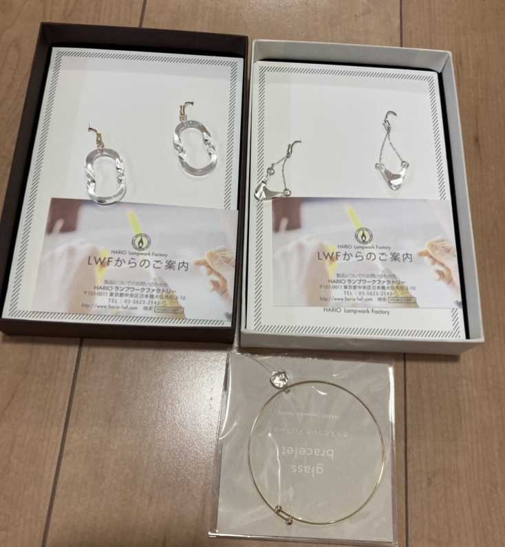 HARIO Lampwork factory 福袋 のネタバレです。 ネックレス ピアス ヘアゴム の3店 とてもキレイなデザインでした!
