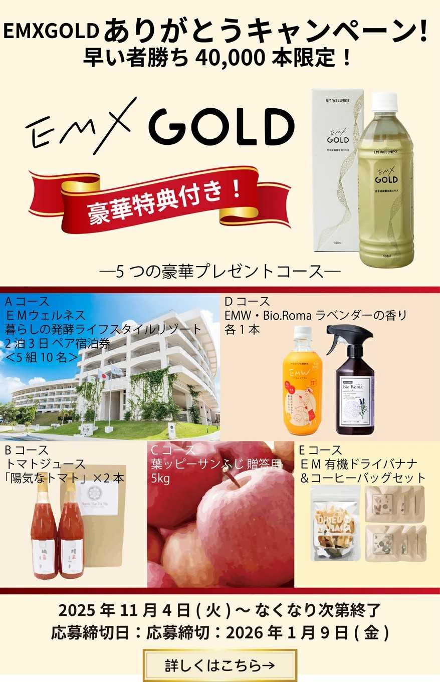 皆さん、こんにちは伊賀屋の けんぢ です😃 本日も開店からたくさんの ご来店ありがとうございます🙏 ただ今、EMX GOLDのありがとうキャンペーン2025 開催中で ございます。https://www.em-seikatsu.co.jp/contents/news/detail.php?id=1448 【EMX GOLD】は私も愛飲してますが【EMX GOLD】と言えば・・・お医者さんから見放された末期ガン患者さんの癌が消えた!何もしなくても飲んでただけで痩せた!給油口からキャップ3杯 入れたらガソリンの燃費が良くなった!・・・など など信じられない報告が続々と寄せられております。 このパワーの源を知りたい方はこちらをチェック! 【EMX GOLD】https://www.igaya.co.jp/?pid=182779894 🎁 【超豪華!】EMX GOLD ありがとうキャンペーン開催中!日頃の感謝を込めて、今、EMX GOLD【ありがとうキャンペーン2025】が開催中です。 EMX GOLD 500mlに付いているシールを3枚集めて応募すると…なんと!EMウェルネスリゾートのペア宿泊券(2泊3日!)や、絶品の「陽気なトマト」ジュース、サンふじリンゴなど、豪華賞品が当たる大チャンス! 5つのコースから1つ選んでご応募いただけます。 ★5つの豪華プレゼントコース★Aコース:EMウェルネス暮らしの発酵ライフスタイルリゾート 2泊3日 ペア宿泊券 <5組10名>Bコース:トマトジュース「陽気なトマト」710ml×2本 <20名>Cコース:葉ッピーサンふじ 贈答用 5kg <50名>Dコース:EMW 500ml・Bio.Romaラベンダーの香り500ml 各1本 <50名>Eコース:EM 有機ドライバナナ&コーヒーバッグセット <150名> 私が狙うのはもちろんAコース!みんなでEMX GOLDを飲んで、健康と運気を爆上げしよう🔥 <キャンペーン期間>2025年11月4日(火) ~ なくなり次第終了応募締切日:応募締切:2026年1月9日(金) このチャンス、絶対に見逃さないでくださいね! その他EM製品https://www.igaya.co.jp/?mode=grp&gid=3019311&sort=n 本日も18時半 閉店まで皆様の ご来店お待ちしてます😘 ホビーショップ伊賀屋〒395-0031 長野県飯田市銀座4丁目10-6TEL:0265-22-0370https://www.igaya.co.jp/ #伊賀屋 #伊賀屋わっしょい #EMXGOLD #EM生活 #EM菌 #奇跡のドリンク #健康オタク #オーガニック #無添加生活 #信じられない効果 #健康革命 #豪華プレゼント #懸賞 #飯田市無添加ショップ #バズる健康法 --------------------【伊賀屋 運営ホームページ各種】●VAPEショップ伊賀屋 https://igaya.shop-pro.jp/●伊賀屋(総合サイト) http://www.igaya.co.jp/●amazon支店 https://amzn.to/2pVKqwe●ブログ https://bit.ly/2NtGhsH--------------------【伊賀屋 関連SNSページ】●Facebook(フェイスブック)・伊賀屋 総合 https://bit.ly/2qutmO7・VAPE専用 https://bit.ly/2CnpUav・店主プライベート https://bit.ly/2NtsoKU ●Twitter(ツイッター) https://bit.ly/33tlScz ※店主プライベート兼用●Instagram(インスタグラム) https://bit.ly/2qxHbv1 ※店主プライベート兼用●Youtube https://bit.ly/34IqyM1●VAPE-Tube https://bit.ly/37gRO6y--------------------にほんブログ村