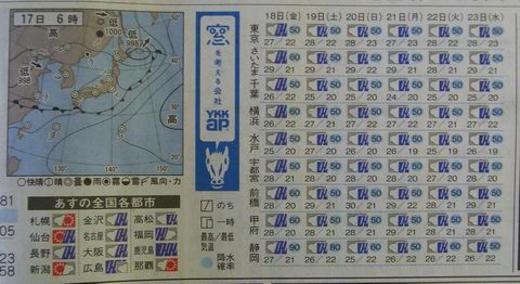 昨年は、夜、風呂上りにストレッチをするのが日課になってましたが、おっくうになって止めてから半年。普段、身体は動かしているんですが、家に戻ると、パソコンの前で知らないうちに居眠り。これはまずいと思って5月終わりから再開しました。ストレッチのほか、ダンベルを使ったウェイトトレーニングも加えて約40分。放っておくと身体は硬くなるし筋力はどんどん衰えますから、あまり無理せずに気持ちの負担にならないよう気楽に続けるつもりです。今日の天気、晴れ、南風、気温25度前後。