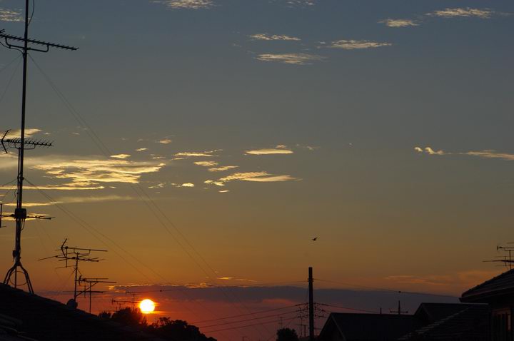 今日の日没です。秋らしい鱗雲がかかって綺麗でした。17時55分アップで17時55分18時13分