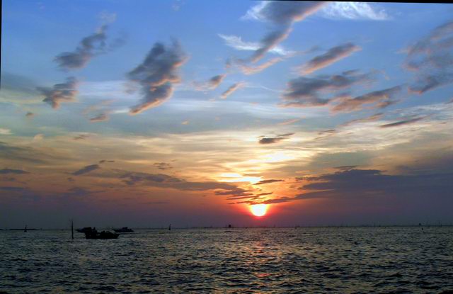 久しぶりに涼しい朝となりましたが昼前には陽射しが戻り気温が上昇してます。台風9号による大雨は千葉でも被害がかなりありました。昨日の午後、千葉に行ったとき利用した線路下を通るトンネルが冠水し自動車が動けなくなったり、地下街に雨水が流れ込む画像がニュースで流れてました。我が家ではベランダの排水口にゴミがたまっていて雨水が逃げないため、大雨の中、傘をさして掃除をしました。福井県に上陸して静岡県に抜けた台風は観測史上初めてのこと。確かに異常気象です。写真整理中に見つけました。、2004年夏、木更津港の夕陽です