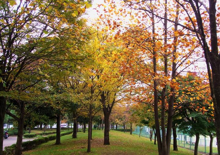毎月第二日曜日のスーパーSの朝市は8時から9時半まで。アルコールを除く食料品が10%キャッシュバックで人気があります。専用駐車場のほかまだ店を開いていない近所の駐車場も満杯となります。カミサンに付き合ってこの朝市へ買出しに行ったあと久しぶりにテニスをしました。12人ほどで12時半まで練習試合を楽しんで引き揚げました。やや寒い曇り空の静かな一日でした。運動公園の紅葉近所の公園のイチョウ
