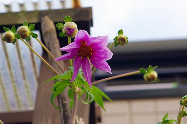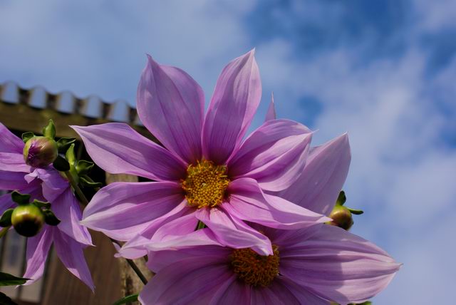 雲が多く冷え込んできた月曜日です。今朝は世界バレーボールで3位になった日本チームが朝のショーに出ずっぱりでした。昨晩、1セットは見たんですが、世界2位のアメリカ相手では勝つのは無理とスイッチを切りパソコンに向かってました。しばらくたってWebのスポーツニュース見たら「3-2でアメリカ破り銅メタル」と出てます。もう終ったのかと思い、テレビのスイッチ入れて同じチャンネルを見たら4セット目を優勢に戦っているところでした。ということはライブでなかったんですね。結果がわかっていたのでちょっと余裕で見てました。皇帝ダリアが開花:高さ3m近いので見上げて撮ってますウッドデッキの椅子に立って横から