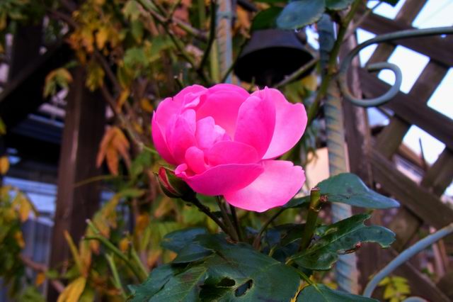 昨日の日中の雨は房総半島周辺だけの限定的な天気だったようです。一夜明けた今日は朝から快晴。向かいの家の屋根の北斜面が白くなってました。霜がおりたようです。朝食のあと畑に出て、タマネギの植え付けと、ちょっと窮屈だった白菜のアーチを取り替えました。明日も初冬の穏やかな小春日和(*)の一日となりそうです。コミュニティセンターの文化祭の手伝いで忙しい週末となります。土曜日は楽器運搬係り。日曜日はフリーマーケットの手伝い。小春日和(こはるびより)とは、晩秋から初冬にかけて、移動性高気圧に覆われた時などの、穏やかで暖かい天候のことである。( Wikipedia)谷津のバラ8「ソドオリヒメ」谷津のバラ9「アキト」庭の花(ミヤコワスレ?)
