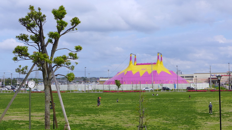 風が涼しい土曜日でした。関東の内陸はよく晴れたようですが房総半島は時折晴れ間は出ても雲の多い一日になりました。ショッピングセンターのなかの広大な駐車場に大きなテントが設営され今日(土曜日から)6月下旬までサーカスが始まりました。今日はオープン初日。近くの公園までWalkingに行きました。テントからは音楽や歓声が流れてきてサーカスらしい雰囲気が感じられ、次の公演待ちの行列もできていました。そのうち孫たちと行くことになりそうです。ついでにセンターのPCデポでWiFiのルーターを買いました。当日の目玉商品で9,000円が5,000円で出ていて衝動買いをしてしましました。