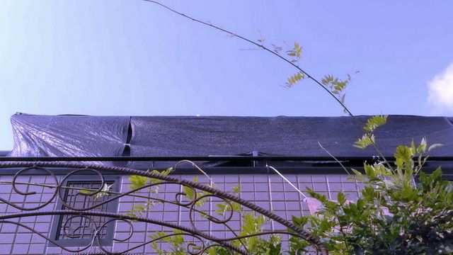 昨日から「熱中症警戒アラート」が続いています。今日は最高気温は32度と猛暑ではありませんが、湿度が高く庭の作業も辛いので、日中は風の通るバルコニーに遮光スクリーンを張りました。約2時間かかり、途中休みを入れながらの作業です。今年は支柱を使わず、屋根の雪止金具に紐を引っかけてスクリーンと結びました。遮光率90%ですが直接光が入るのを防ぐだけで、暑さに対して大きなな効果はありませんが気分的なものもあるんでしょう。久しぶりの梯子の上の作業で腰に来ました。夕顔