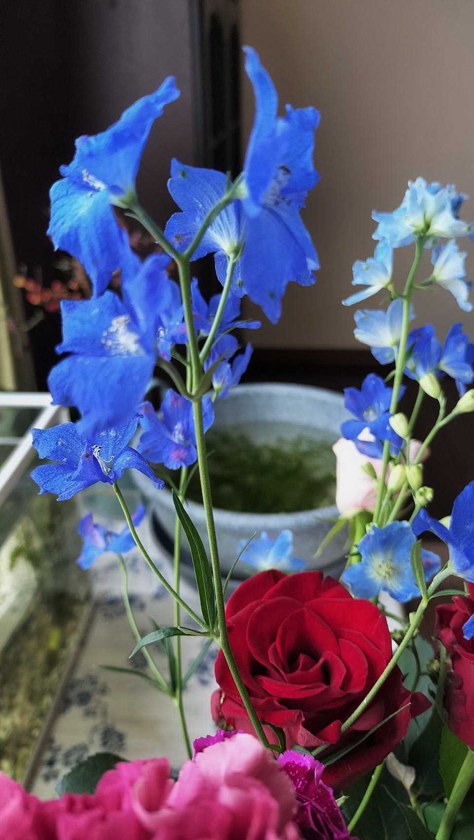 第2、第4水曜日は花の配達があります。ひと月2,000円の契約で季節の花束と花の延命剤を届けてくれます。スーパーの花売り場の花よりは種類が豊富で華やかです。そのたびに買いに行く手間も省けて便利です。