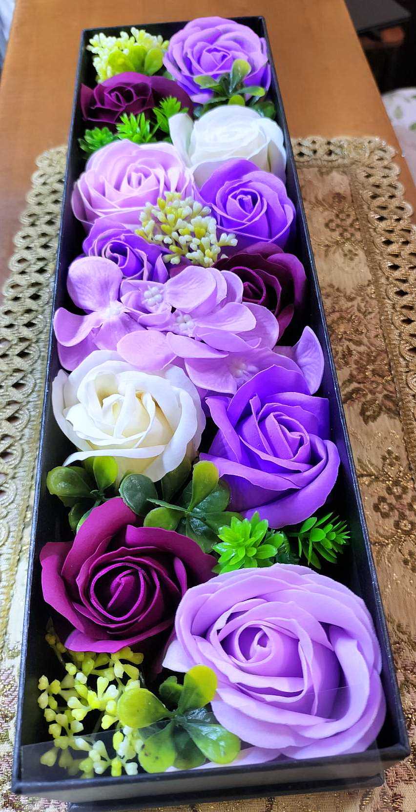 花の定期便は2,000円で毎月2回季節の花を配達してくれます。8月の配達は1回だけで生花ではなく石鹸で作られた「ソープフラワー」を届けてくれました。造花とは趣の違うきれいなバラの花でした。